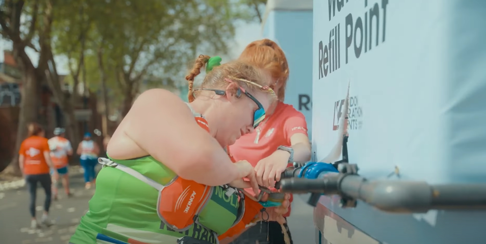 In 2025 we increased the number of Water Refill Stations along the routes of the GetPRO Bath Half, Brighton Marathon, TCS London Marathon, and The Big Half. An average of 32% of participants across our events wear a hydration vest, a bottle belt, or carry a reusable drinks bottle.